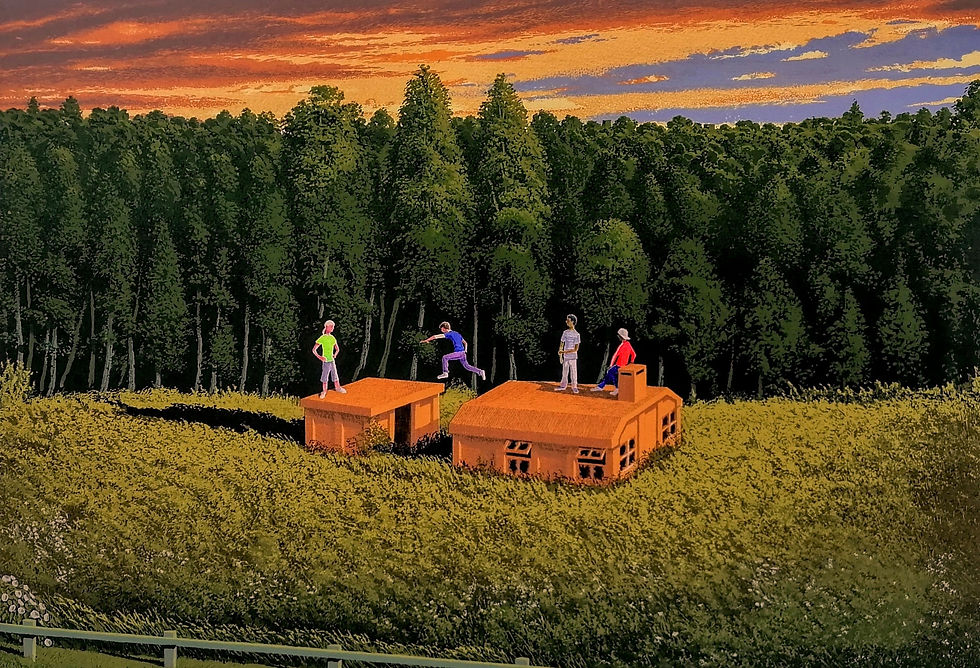 Martin is a painter and screen printer based in South London. He studied at Croydon College, Trent Polytechnic and the Royal Academy Schools sometime in the last century.He loved screen printing from the moment he was first properly introduced to it in 1981. From the outset he preferred the reduction method rather than the photographic/transfer processes commonly associated with screen printing. His stencils are created by painting directly onto the screen, using screen block or screen painting fluid. The technique is simple but can become strikingly complex. The resulting prints resonate with many colours. Some of the work reveals a wry, whimsical charm and humour while other pieces whisper of more melancholic, emotional and enigmatic affairs.Largely influenced by the traditions of English romanticism and American/European realism, Martin merges themes and inspirations of musical nostalgia, procrastination, elegiac decay, childhood recollections, poems, short stories, sheds, shelters, wild flowers and lost toys into a compelling array of images.