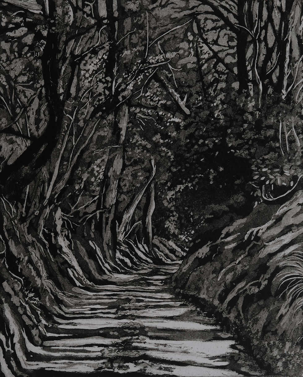 I specialise in etching but also draw, paint and explore as many printmaking techniques as I can as I have a fascination with the processes involved."